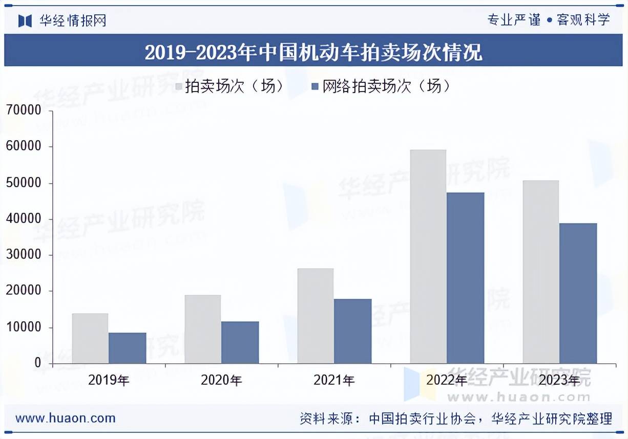 2024年以来“两新”政策实施,汽车以旧换新政策效应逐步显现,2023年我国机动车拍卖场次达到50850场,机动车拍卖行业发展的十年中,互联网技术的应用越发广泛与深入,网络拍卖成为开展机动车拍卖活动的主要方式,2023年我国机动车网络拍卖场次为39074场。
