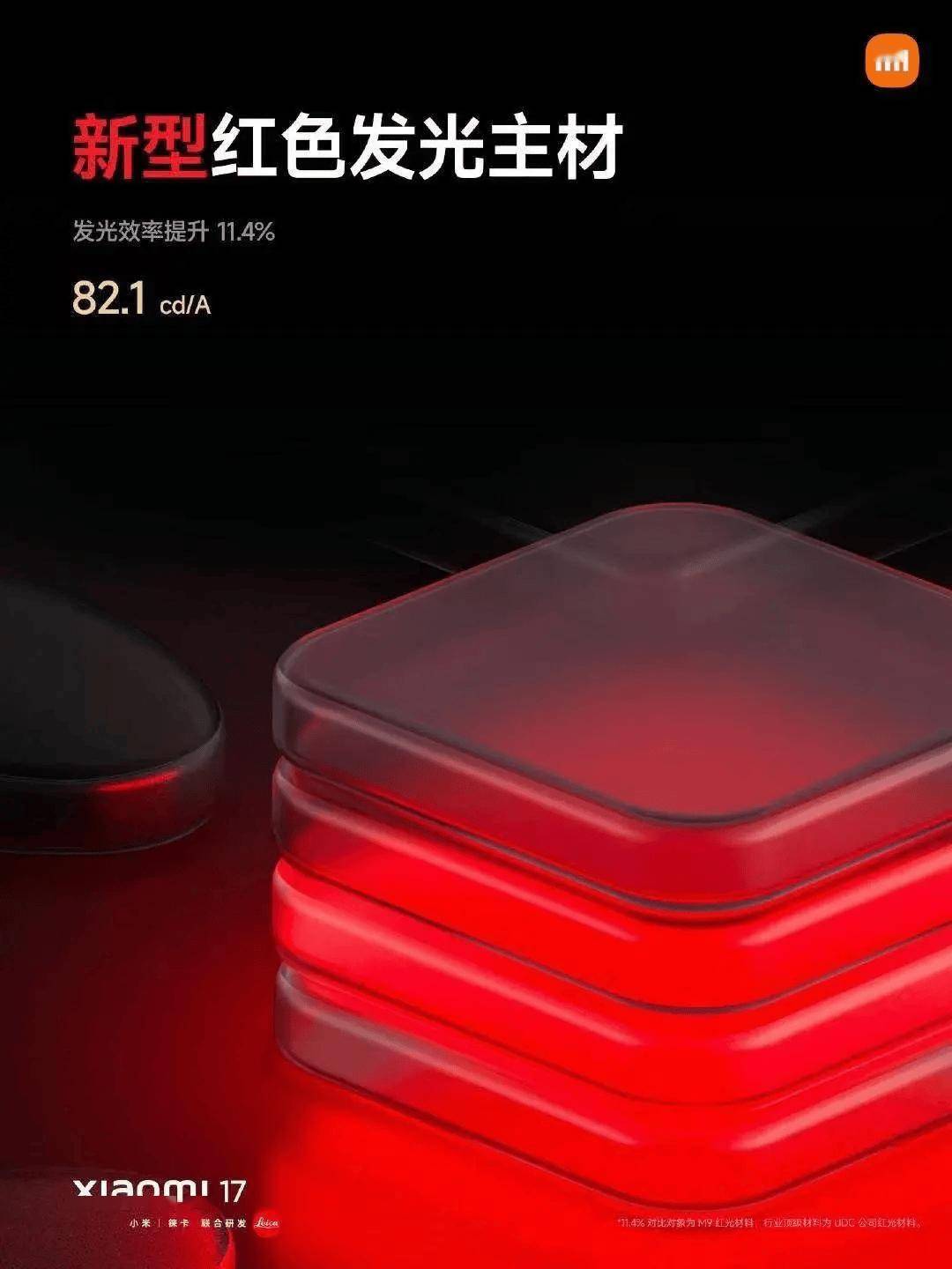 近日,小米公司正式发布年度旗舰新品小米17系列,其全系搭载的M10新一代屏幕发光技术体系中的新型红色发光主材引发行业关注。该核心材料由激智科技通过旗下产业基金战略投资的卢米蓝新材料有限公司与小米联合实验室研发,不仅实现发光效率提升11.4%的突破,更标志着国产 OLED 红光材料首次在性能上超越进口产品。