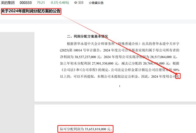 可同样是2024年的利润分配公告,美的集团依然使用的是“可分配利润”这个词。